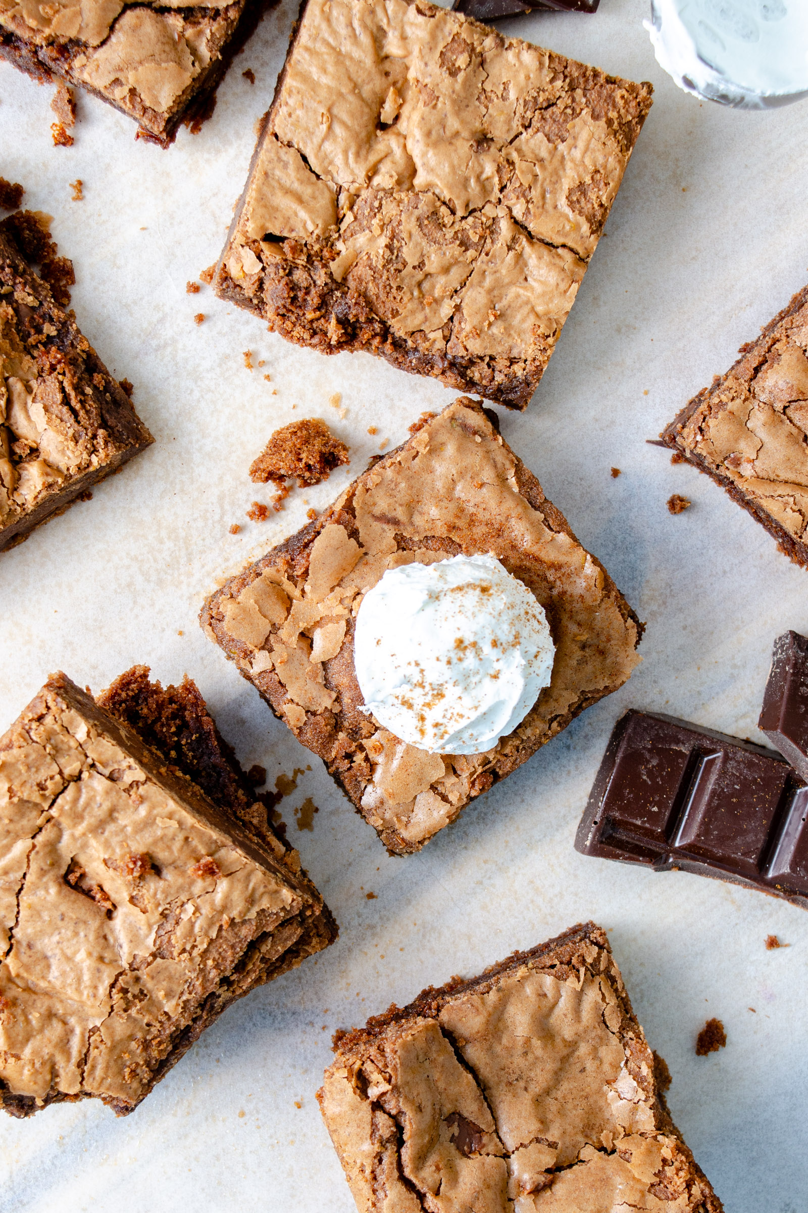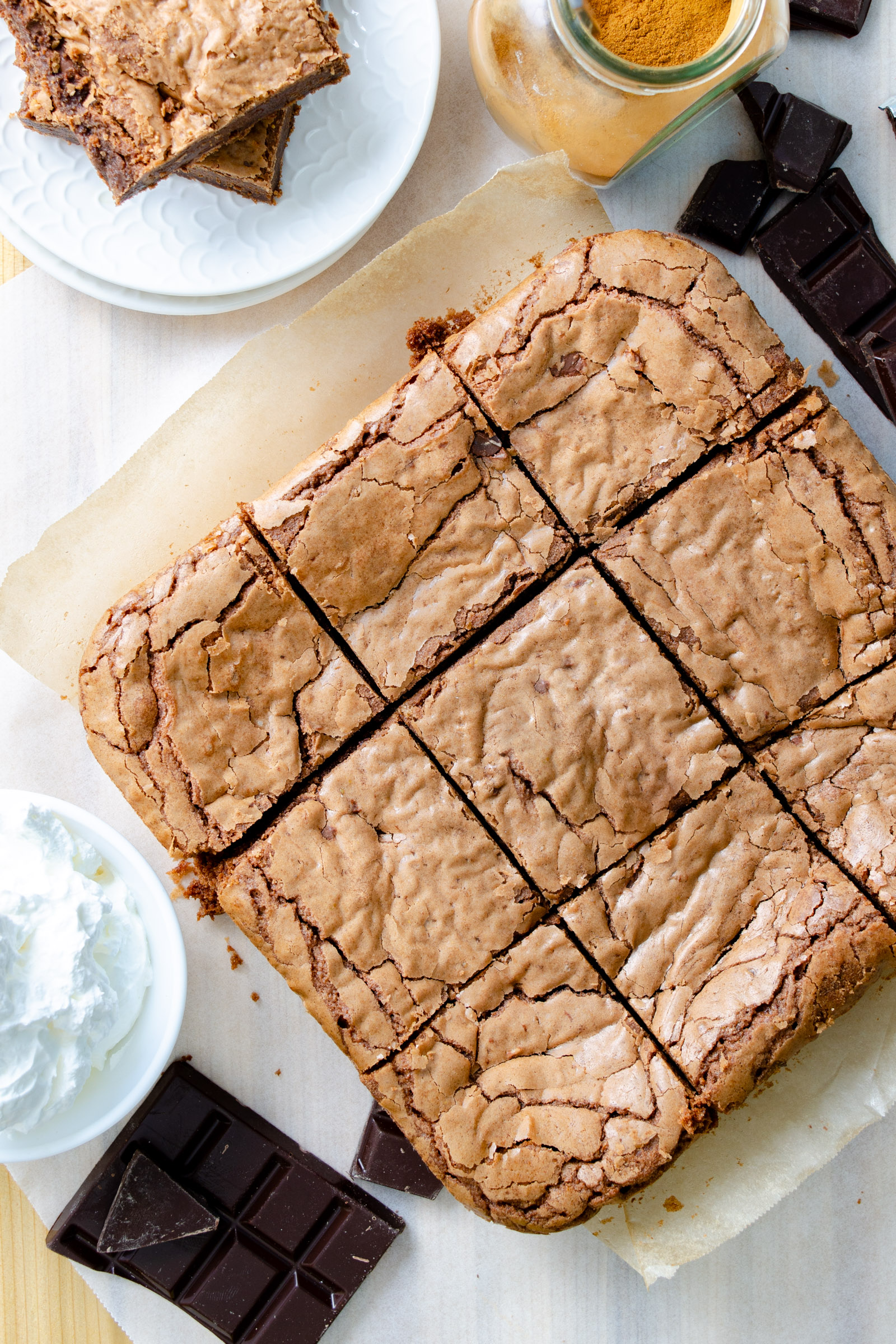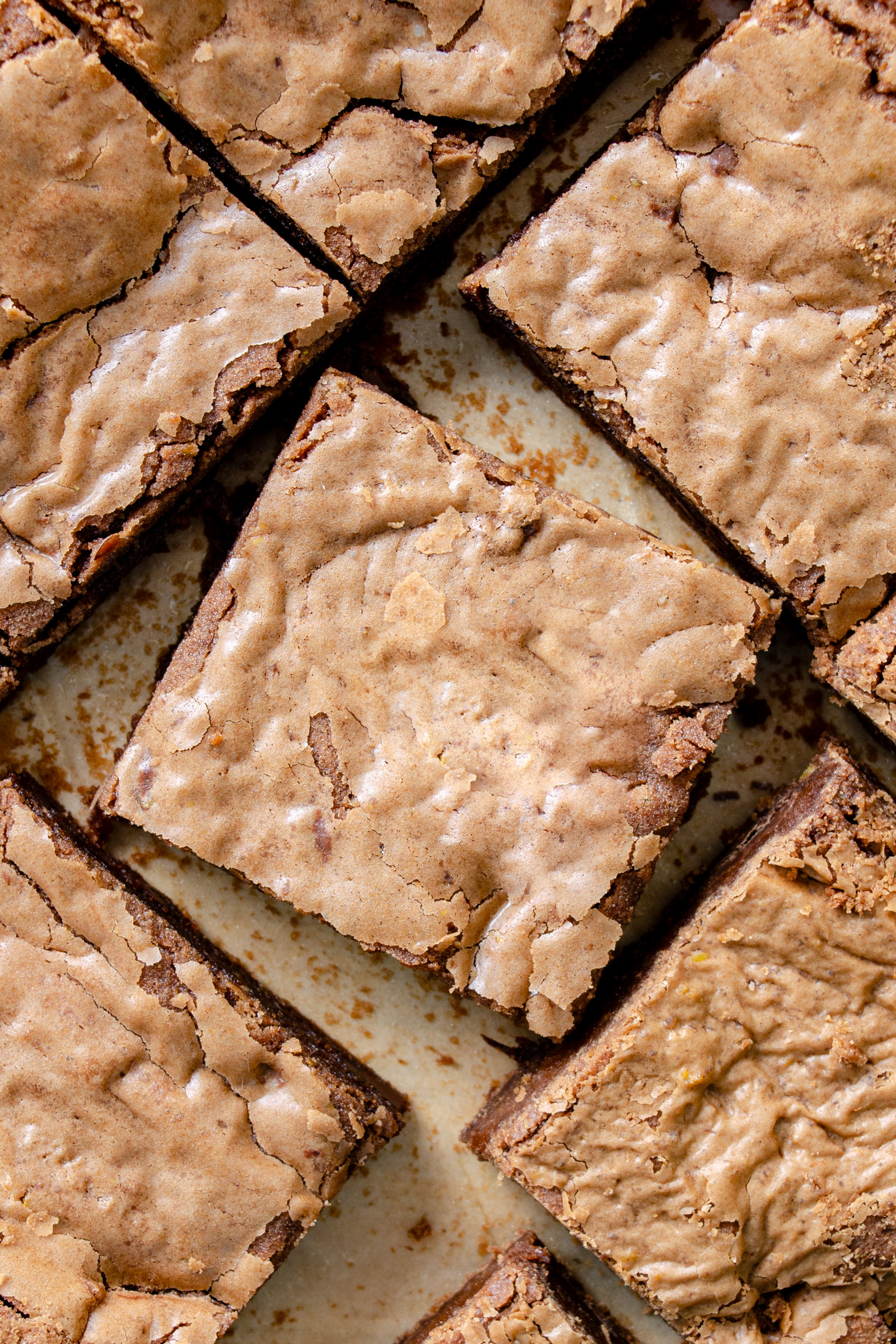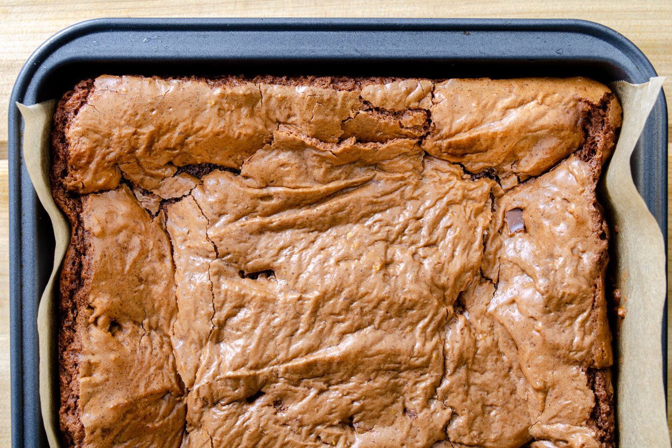 Just look at that crinkly golden hued top. This may be the only indicator that these brownies are, in fact, made from gluten-free flour (which doesn’t brown the way wheat flour does when baked).