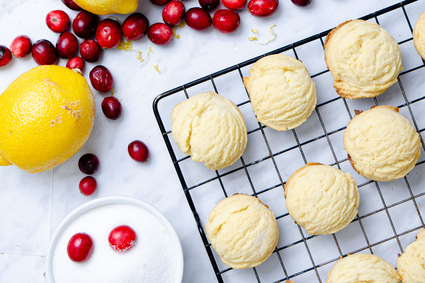 In sunny Arizona, where I’m from, lemons abound from Fall to Winter—around the time cranberries hit the stores. Since I will forever pair lemons and cranberries with cool weather and a need for brightness, these little drops of sunshine are winter cookies.